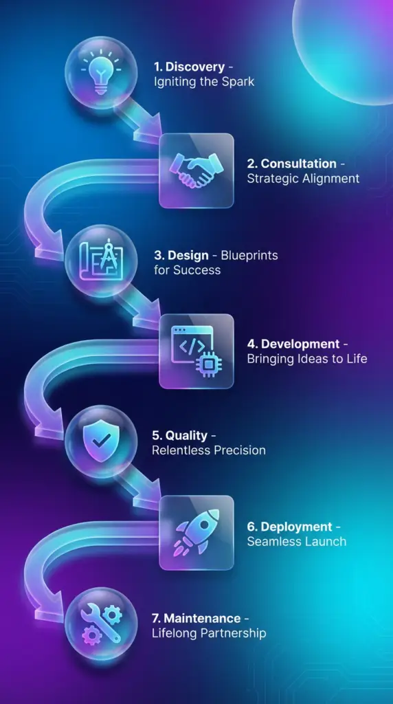 We architect future-proof solutions with meticulous attention to security, scalability, performance, and extensibility. From high-level system design and data models to detailed UI/UX wireframes, API specifications, and security blueprints, every element is engineered for enterprise resilience and seamless evolution.
